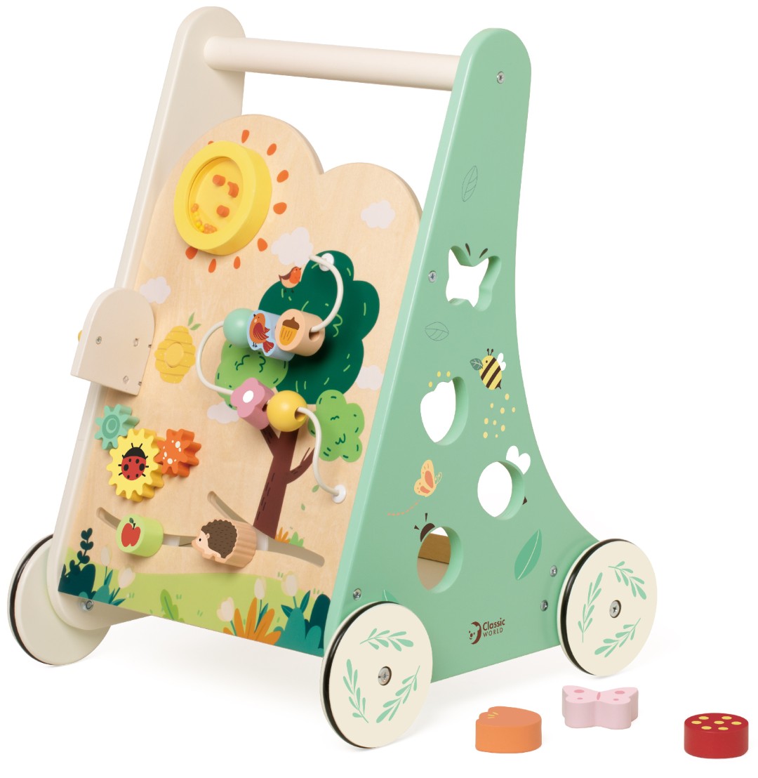 Vi har fundet Classic Træ Gåvogn Med Aktivitetscenter Skov Fra fra Classic World hos mm action i kategorien . Tag med på eventyr i skovens hjerte Denne farverige gåvogn i træ er den perfekte ledsager, når barnet skal lære at tage sine første skridt. Forest Walker kombinerer stabil støtte med sjove aktiviteter, der stimulerer sanserne og udvikler motorikken. Vogn