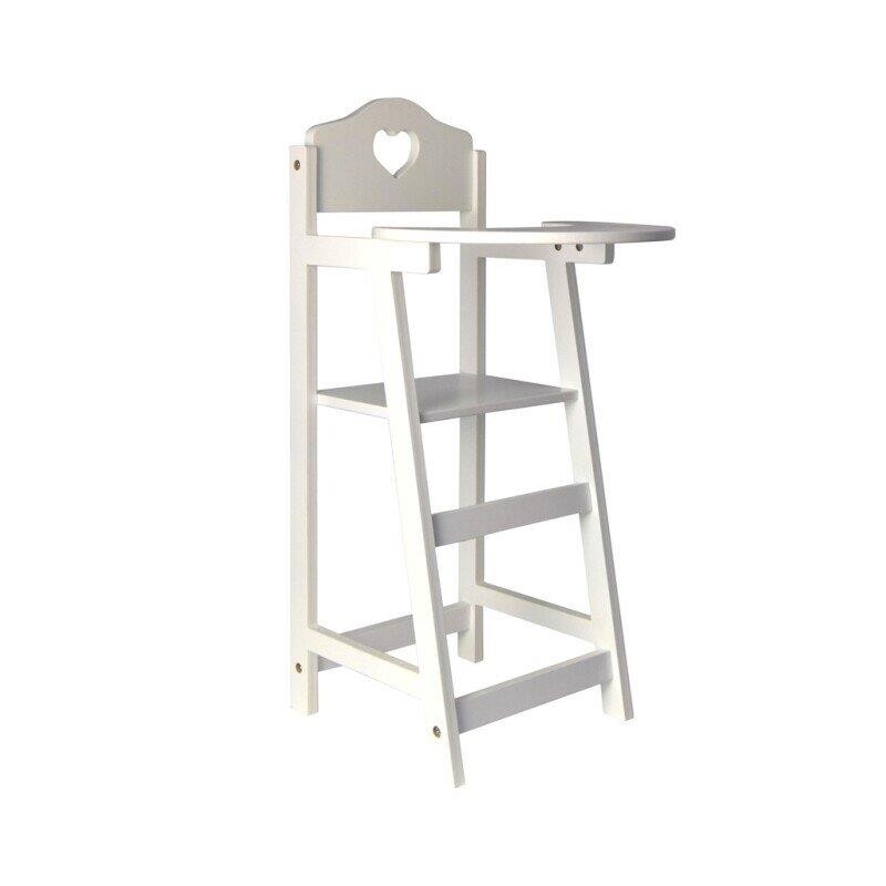 Vi har fundet Dukke Højstol Træ Inkl Hynde hos nova nordic i kategorien . Flot højstol til dukker. Fremstillet i hvidmalet træ. Stolen har en solid konstruktion, og der medfølger en lille siddepude til stolen. Passer til dukker op til 50 cm. Måler: H: 57 x B: 24 x D:27 cm Fra 3 år NB: Produktet skal samles