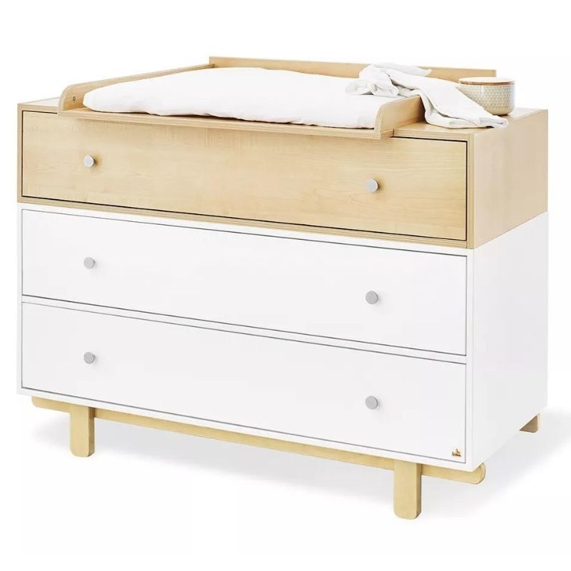 Vi har fundet Pinolino Puslekommode Boks X X fra Pinolino hos wood to you i kategorien . Flot puslekommode med 3 store skuffer Boks puslekommode på 126 cm x 78 cm x 99 cm i ahorn, hvid MDF og krydsfiner. Den elegante puslekommode har 3 store skuffer, som giver god opbevaringsplads til babyudstyr. Det er nemt at åbne og lukke skufferne, da der